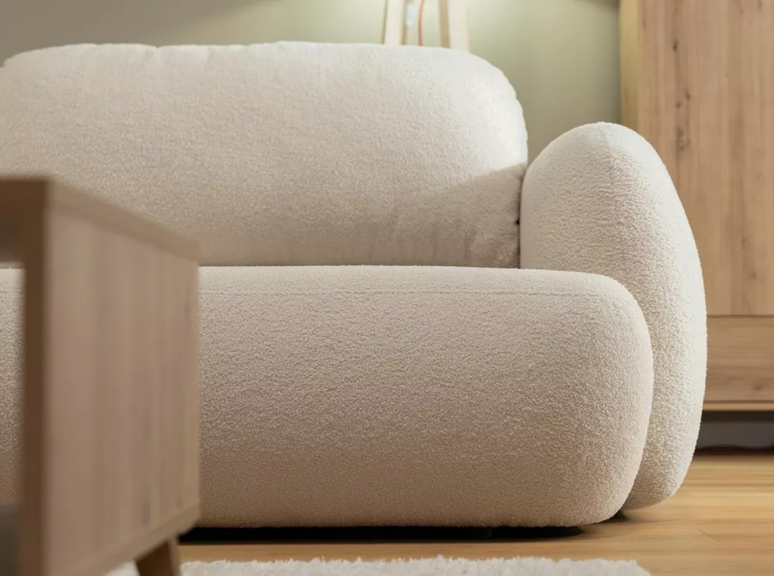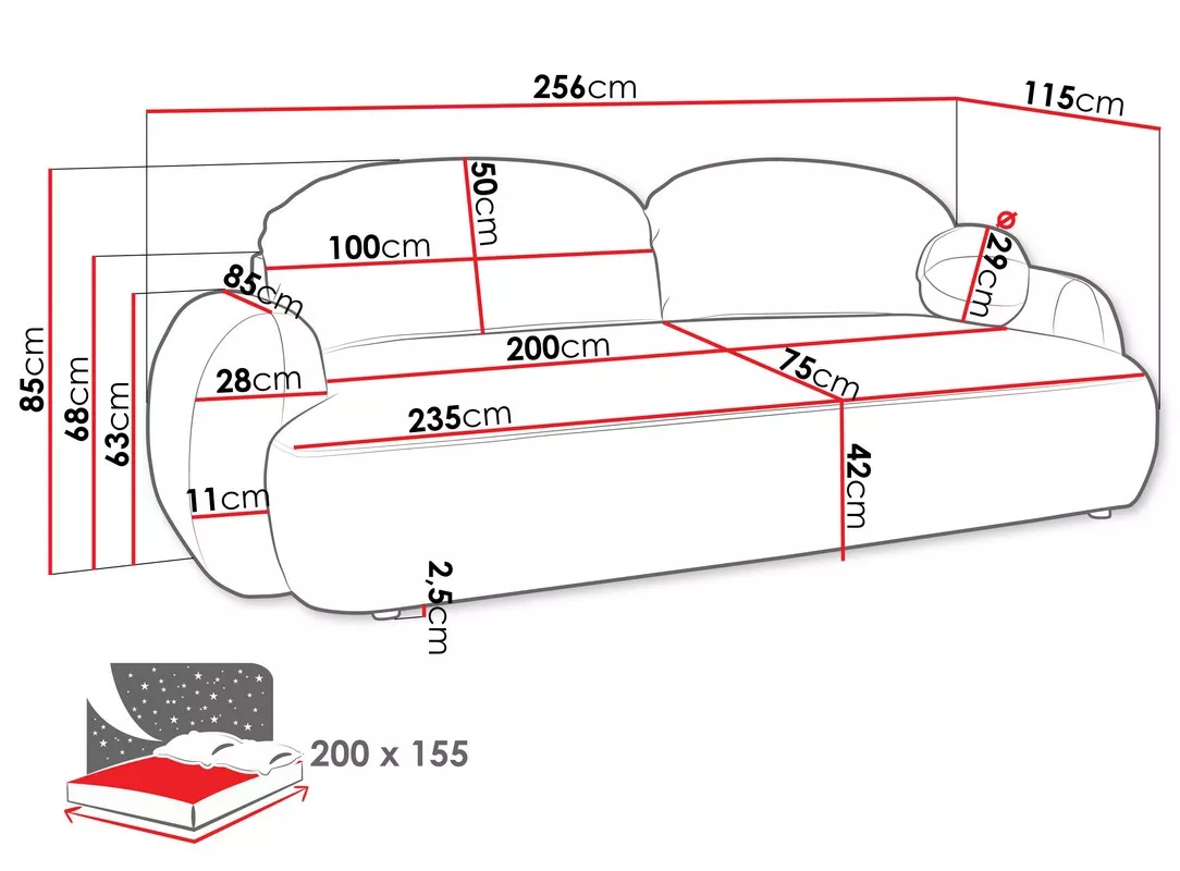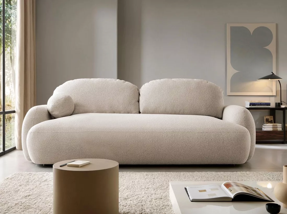 Rozkládací pohovka JACKI zaujme módními křivkami a módní čalouněnou látkou, která dodává pohovce jedinečný charakter. Součástí je kulatý dekorativní polštář pro maximální pohodlí při odpočinku. Praktická rozkládací funkce umožňuje snadno proměnit pohovku ve spací plochu o rozměrech 155×200 cm, ideální pro každodenní spánek i občasné přenocování.