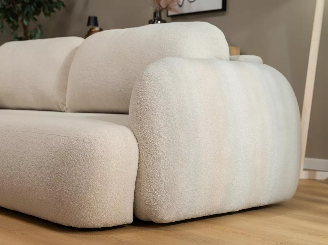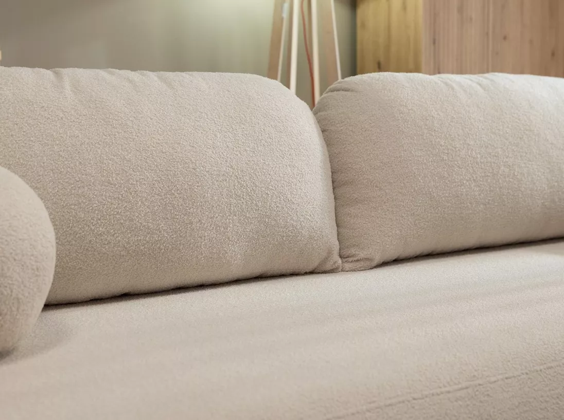 Rozkládací pohovka JACKI zaujme módními křivkami a módní čalouněnou látkou, která dodává pohovce jedinečný charakter. Součástí je kulatý dekorativní polštář pro maximální pohodlí při odpočinku. Praktická rozkládací funkce umožňuje snadno proměnit pohovku ve spací plochu o rozměrech 155×200 cm, ideální pro každodenní spánek i občasné přenocování.