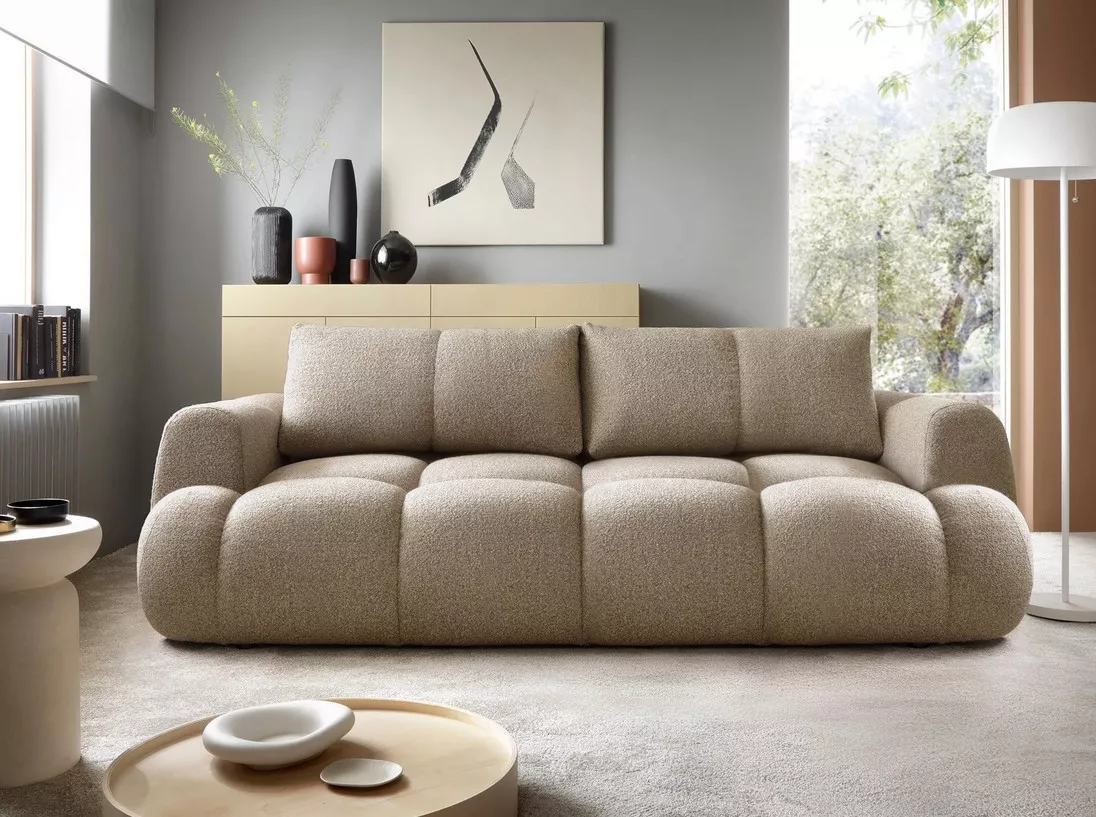 Rozkládací pohovka ERBIN spojuje moderní design s praktičností. Dekorativní prošívání na sedáku a opěradle dodává pohovce elegantní a moderní vzhled, zatímco ergonomický tvar umožňuje snadné začlenění do jakéhokoli interiéru. Rozkládací funkce a praktický úložný prostor navíc zaručují komfort a pořádek každý den.