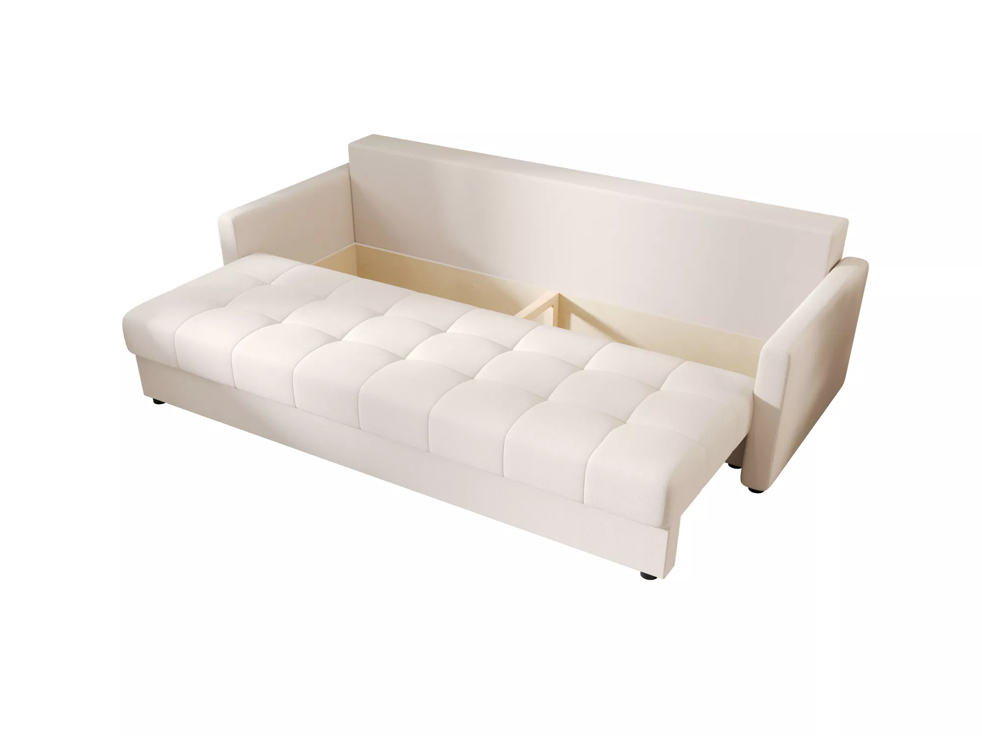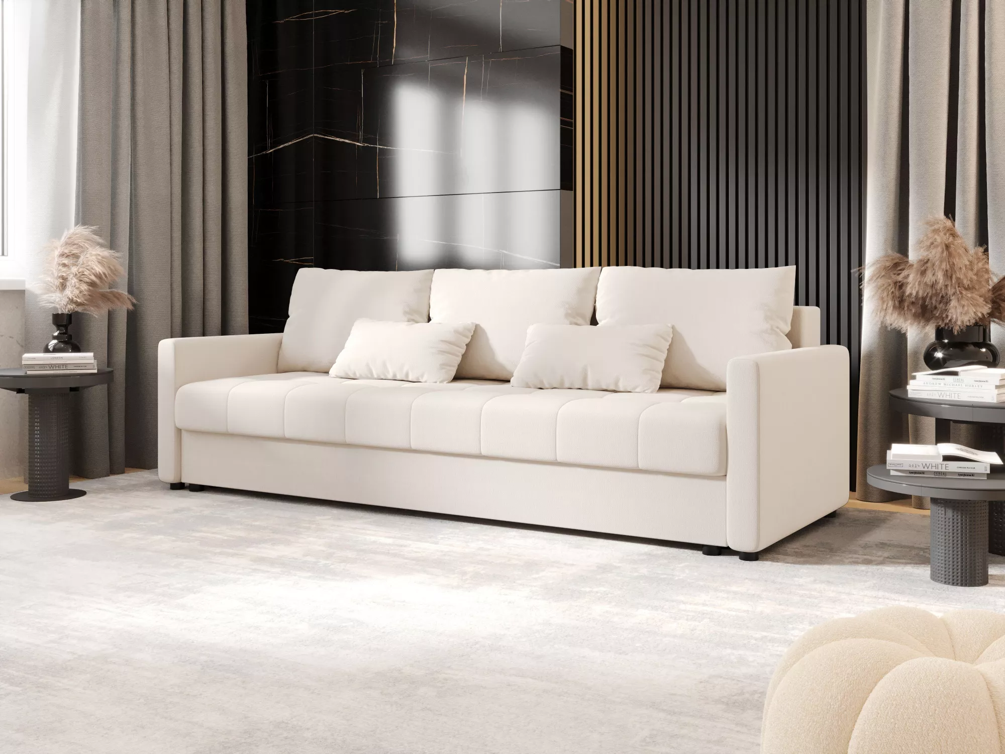 Rozkládací pohovka ADELINDE má opěradlo tvořené volně loženými polštáři, což zvýší komfort používání a zpříjemní každodenní chvíle odpočinku. Disponuje rozkládací funkcí na lůžko o rozměrech 130x200 cm a nechybí ani praktický úložný prostor pro uložení sezónního oblečení nebo lůžkovin.