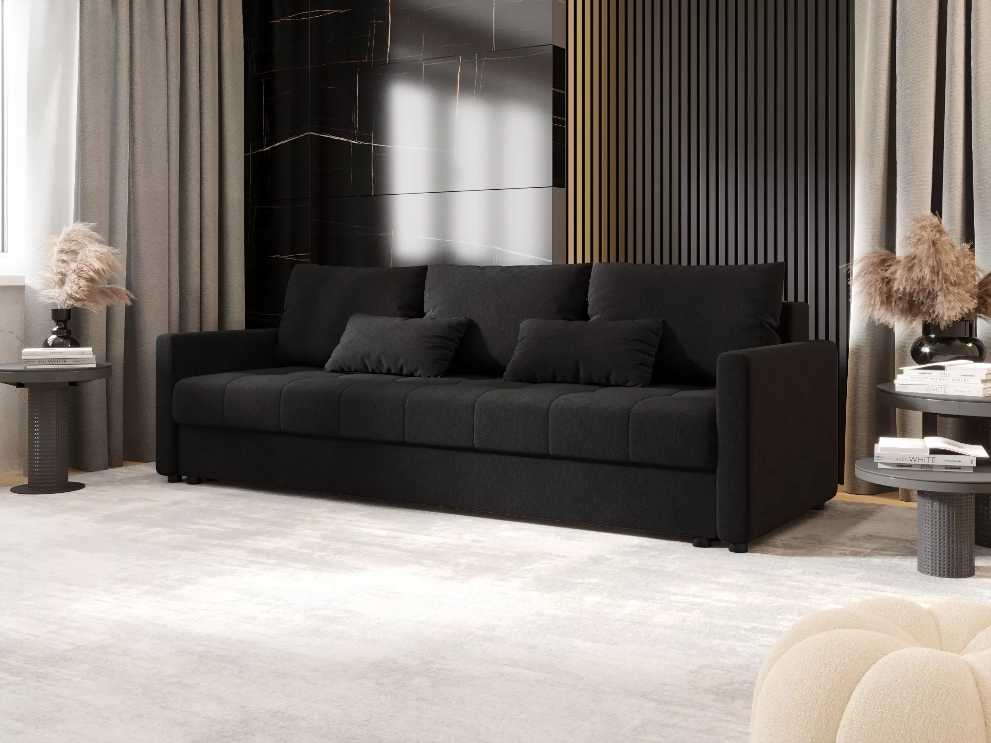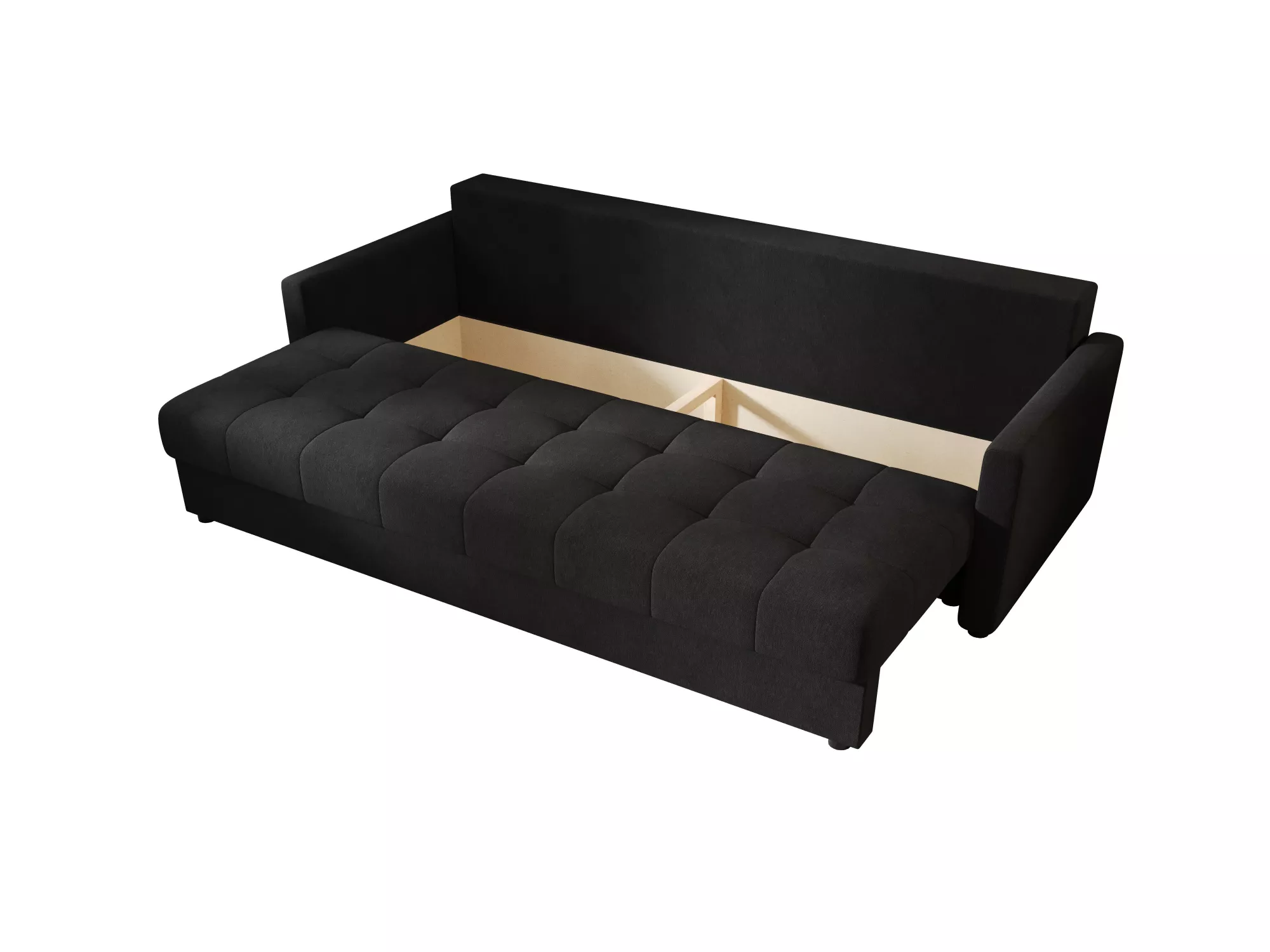 Rozkládací pohovka ADELINDE má opěradlo tvořené volně loženými polštáři, což zvýší komfort používání a zpříjemní každodenní chvíle odpočinku. Disponuje rozkládací funkcí na lůžko o rozměrech 130x200 cm a nechybí ani praktický úložný prostor pro uložení sezónního oblečení nebo lůžkovin.