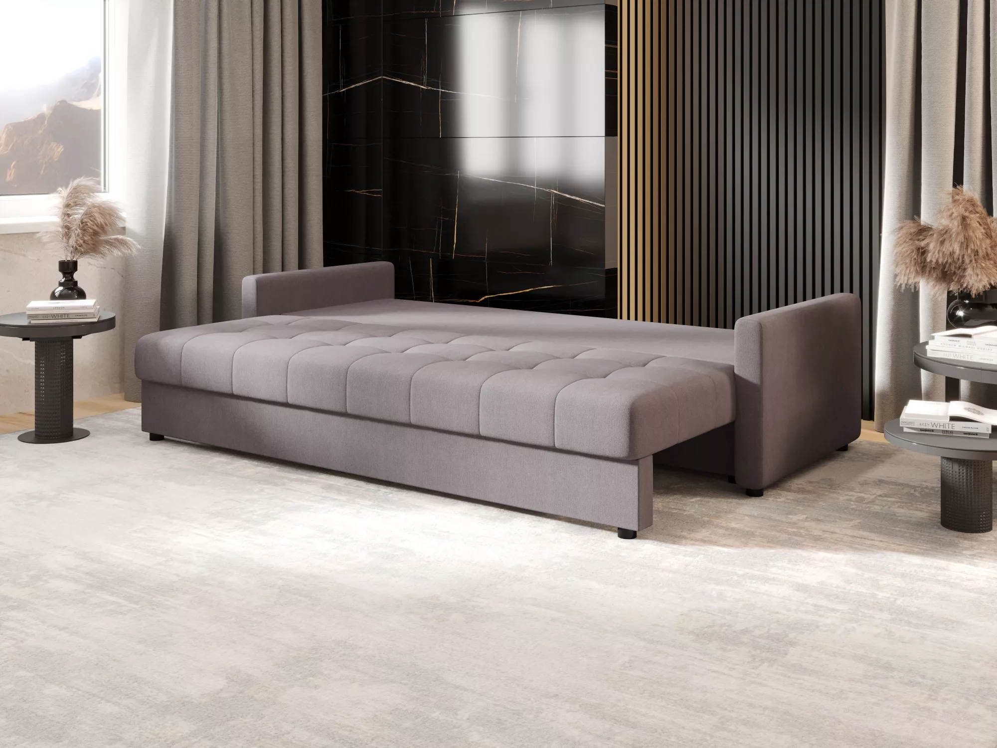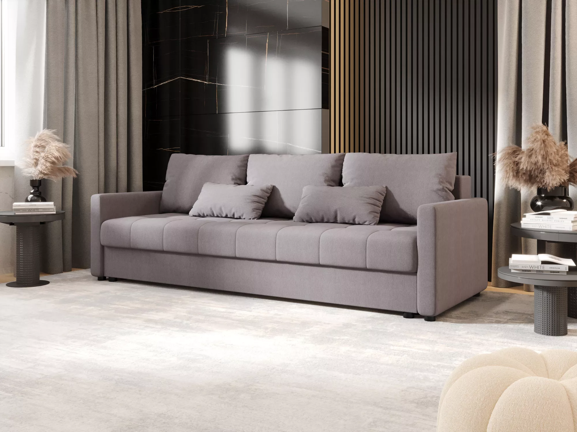 Rozkládací pohovka ADELINDE má opěradlo tvořené volně loženými polštáři, což zvýší komfort používání a zpříjemní každodenní chvíle odpočinku. Disponuje rozkládací funkcí na lůžko o rozměrech 130x200 cm a nechybí ani praktický úložný prostor pro uložení sezónního oblečení nebo lůžkovin.