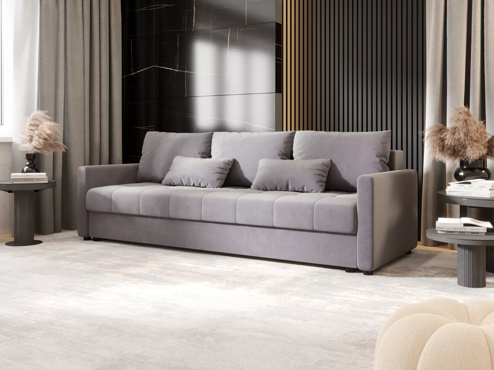 Rozkládací pohovka ADELINDE má opěradlo tvořené volně loženými polštáři, což zvýší komfort používání a zpříjemní každodenní chvíle odpočinku. Disponuje rozkládací funkcí na lůžko o rozměrech 130x200 cm a nechybí ani praktický úložný prostor pro uložení sezónního oblečení nebo lůžkovin.