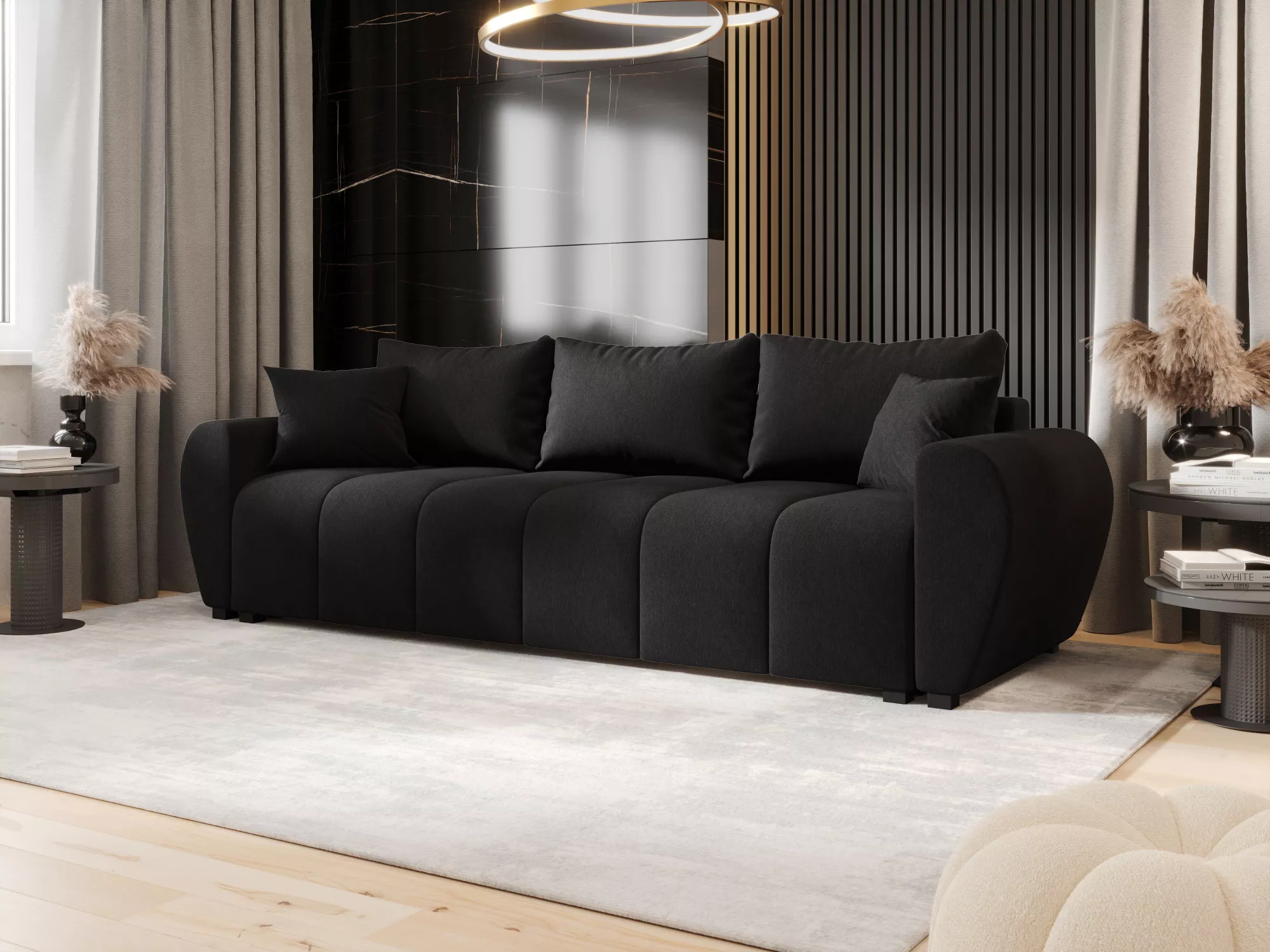 Rozkládací pohovka LUKAVA na první pohled zaujme svými zaoblenými boky a prošívaným sedákem. Pohovka disponuje rozkládací funkcí na lůžko o rozměrech 130x200 a úložným prostorem. Zadní část pohovky je čalouněná látkou, což umožňuje její umístění kdekoliv v místnosti.