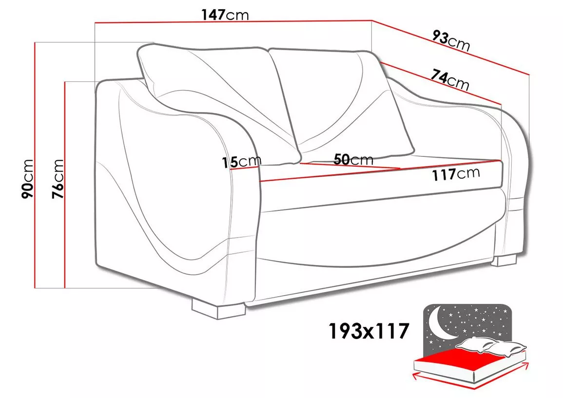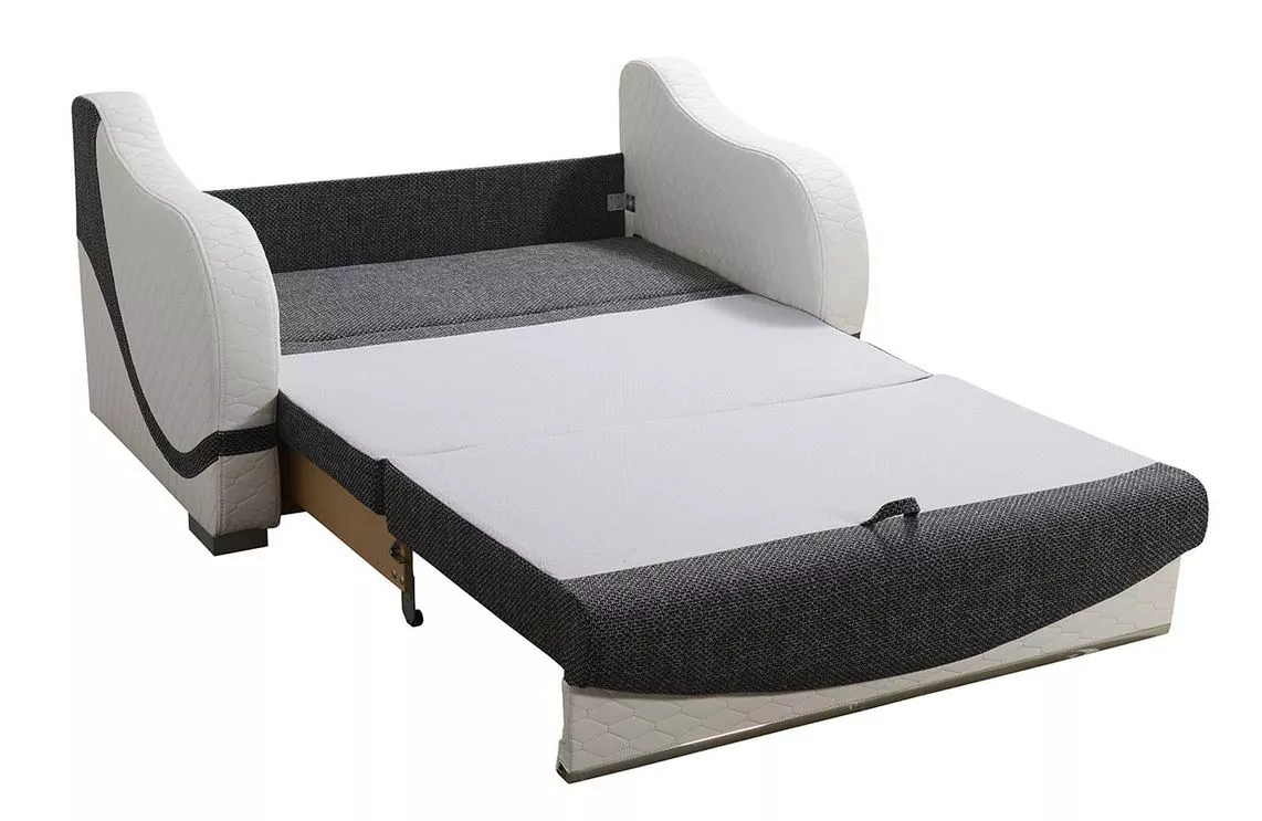 Dvoumístná pohovka LOWELL zaujme svou elegancí a skvěle zapadne do moderního interiéru. Navíc ji lze rozložit na komfortní lůžko o spacím prostoru 117 x 193 cm. V pohovce se nachází praktický úložný prostor na ložní prádlo, který může sloužit také jako místo pro sezónní oblečení. Zadní část je čalouněná látkou, což umožňuje její umístění kdekoli v místnosti.