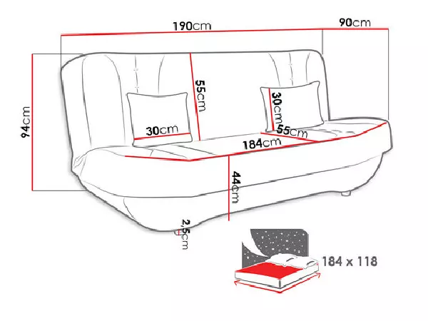 Rozkládací pohovka SACRAMENTO zaujme svou elegancí a skvěle zapadne do moderního interiéru. Pohovku lze rozložit na komfortní lůžko o spacím prostoru 118 x 184 cm. V pohovce se nachází praktický úložný prostor na ložní prádlo, který může sloužit také jako místo pro sezónní oblečení. Zadní část je čalouněná látkou, což umožňuje její umístění kdekoli v místnosti.