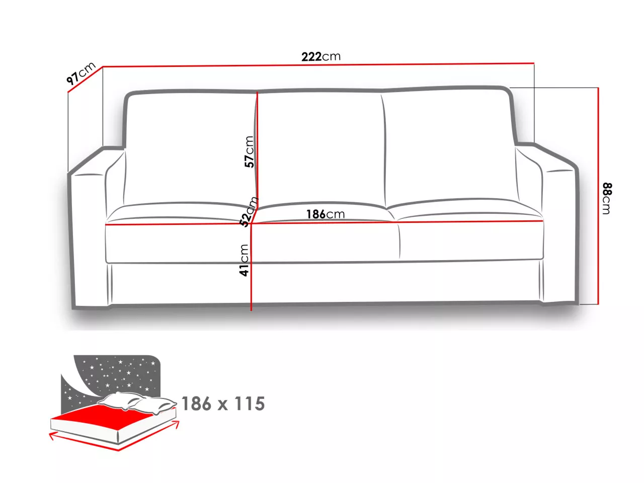 - ložná plocha: 115x186 cm