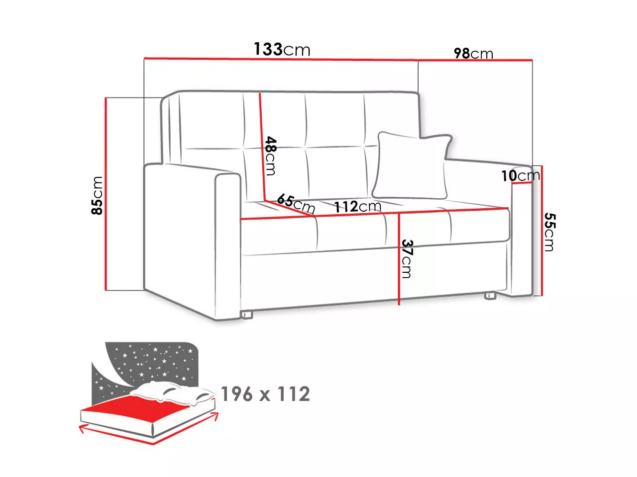 Rozkládací pohovka s úložným prostorem BELA 2 zaujme svou elegancí a skvěle zapadne do moderního interiéru. Navíc ji lze rozložit na komfortní lůžko o spacím prostoru 112x196 cm. V pohovce se také nachází praktický úložný prostor na ložní prádlo, který může sloužit také jako místo pro sezónní oblečení. Zadní část pohovky je čalouněná látkou, což umožňuje její umístění kdekoli v místnosti.