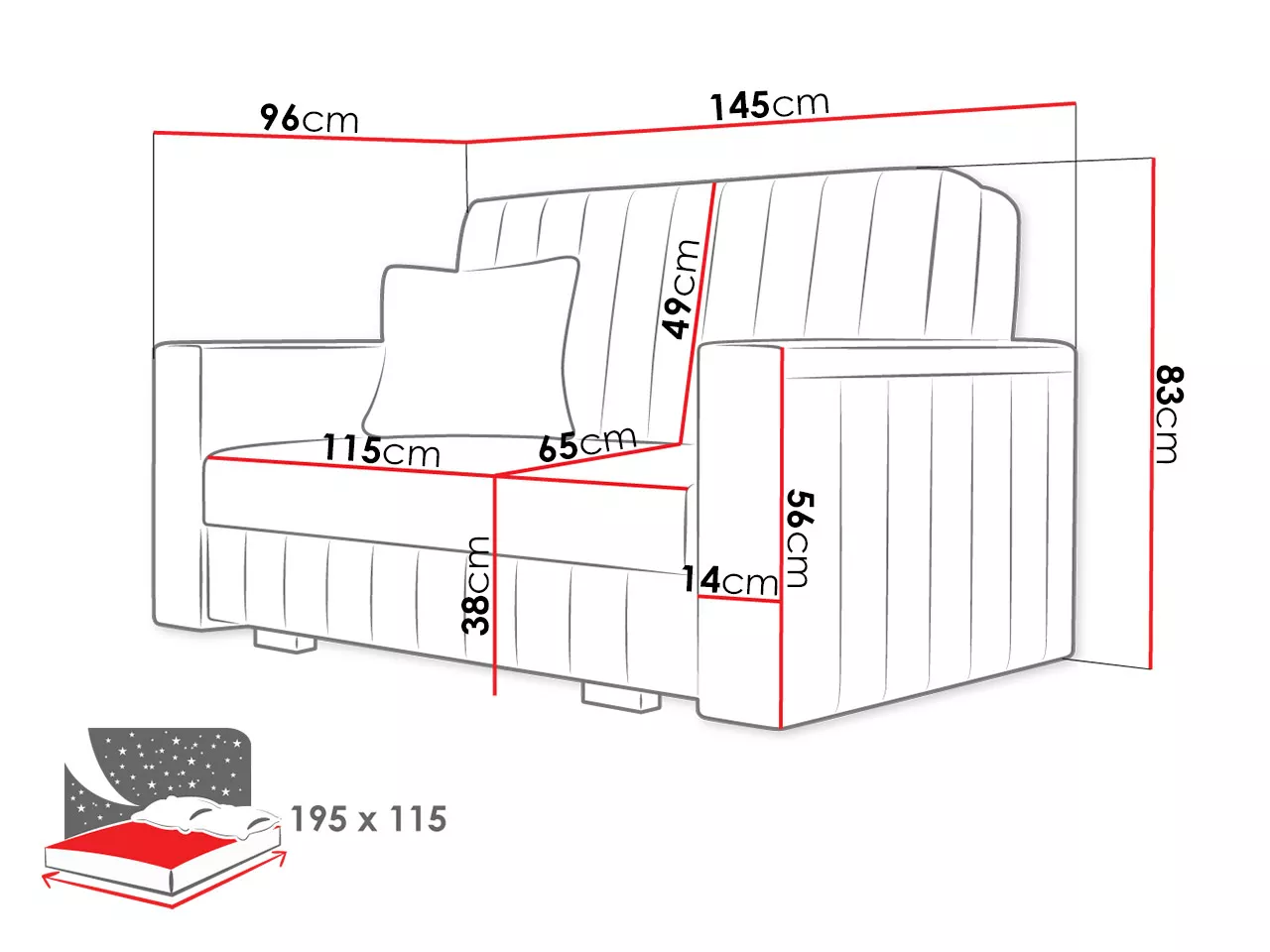 Rozkládací pohovka s úložným prostorem BELA GLAM 2 zaujme svou elegancí a skvěle zapadne do moderního interiéru. Navíc ji lze rozložit na komfortní lůžko o spacím prostoru 115x195 cm. V pohovce se také nachází praktický úložný prostor na ložní prádlo, který může sloužit také jako místo pro sezónní oblečení. Zadní část pohovky je čalouněná látkou, což umožňuje její umístění kdekoli v místnosti.