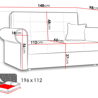 Rozkládací pohovka s úložným prostorem BELA SILVER 2 zaujme svou elegancí a skvěle zapadne do moderního interiéru. Navíc ji lze rozložit na komfortní lůžko o spacím prostoru 112x196 cm. V pohovce se také nachází praktický úložný prostor na ložní prádlo, který může sloužit také jako místo pro sezónní oblečení. Zadní část pohovky je čalouněná látkou, což umožňuje její umístění kdekoli v místnosti.