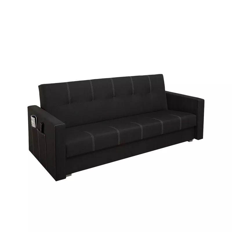 Moderní trojmístná pohovka TIELEN je ideální pro každodenní spaní. Jednoduchým rozložením získáte spací plochu o rozměrech 115x190 cm. Konstrukce pohovky je vyrobena ze stabilního rámu, zatímco sedák a opěradlo je vyrobeno z pěny se zvýšenou pružností a hustotou, což zaručuje vysoký komfort. Použitá tkanina je odolná vůči tření. Nechybí ani praktický úložný prostor.