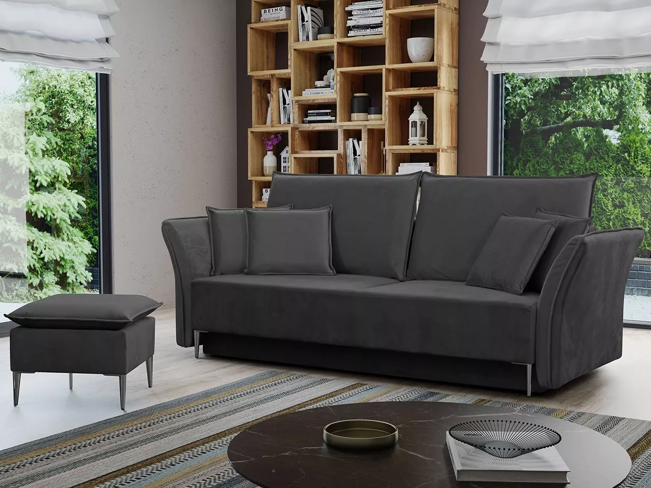 Dvoumístná pohovka na každodenní spaní KURI - tmavá šedá / stříbrné nožky
