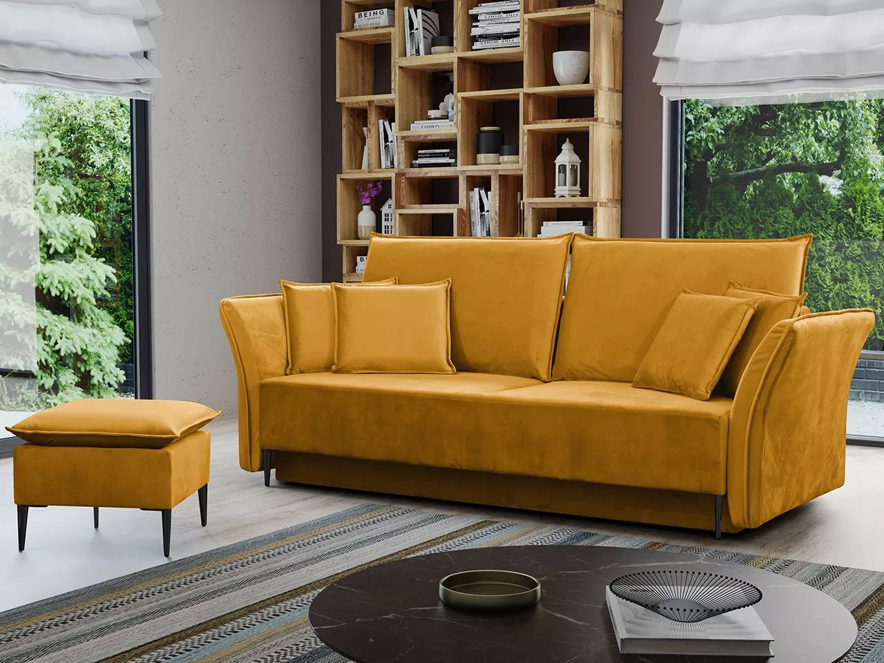 Dvoumístná pohovka na každodenní spaní KURI - hořčicová / černé nožky