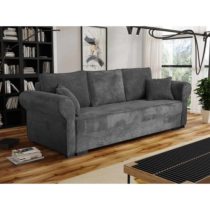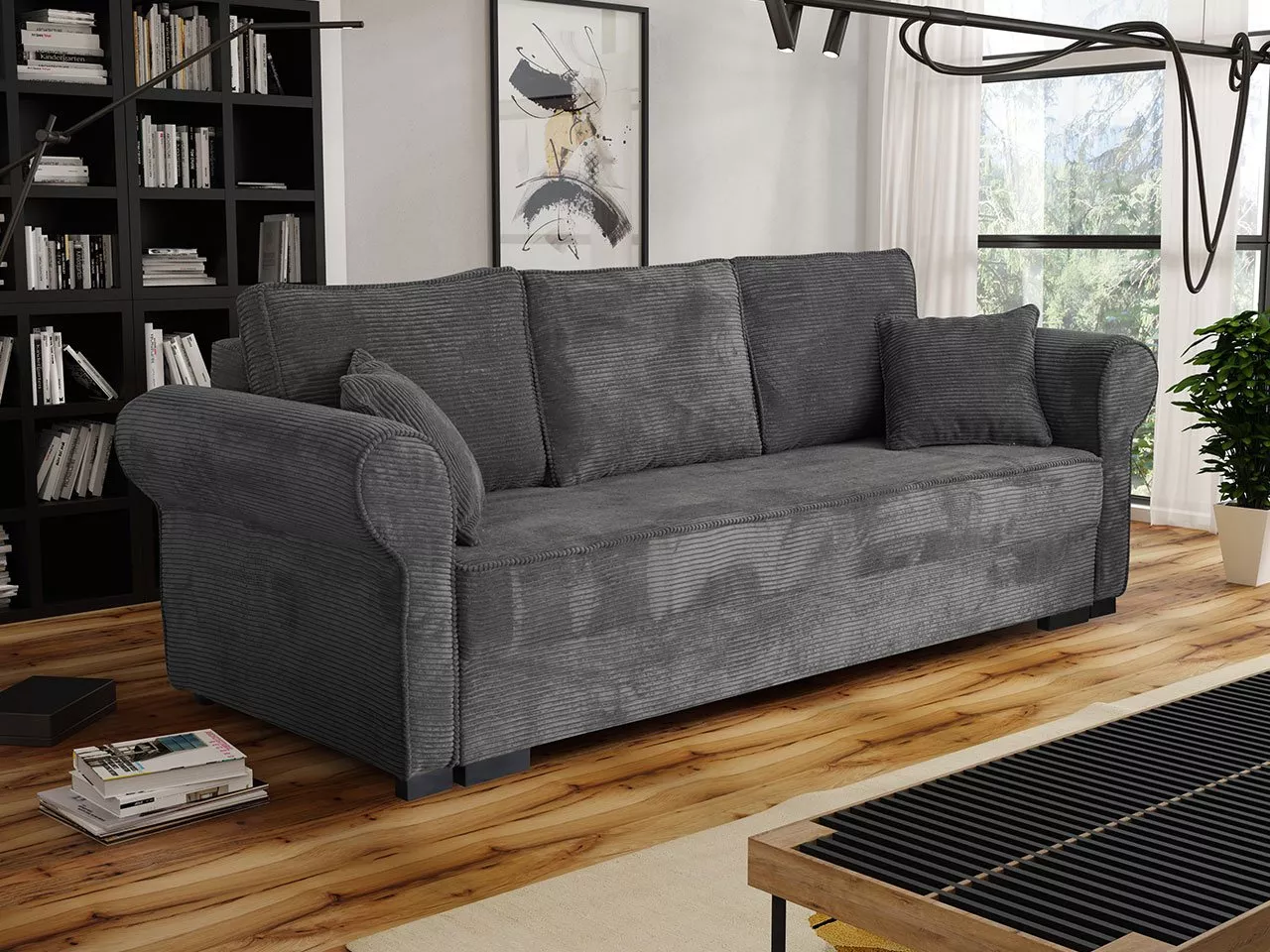 Trojmístná pohovka na každodenní spaní MECOCAL - tmavá šedá