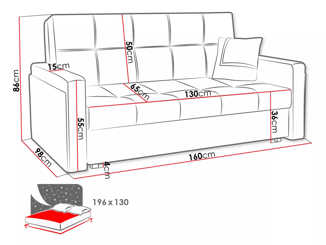 Moderní dvoumístná pohovka ASUGA 2 nabízí funkci každodenního spaní o lůžku 130x196 cm. Velkou výhodou je také úložný prostor, kam lze ukládat lůžkoviny.
