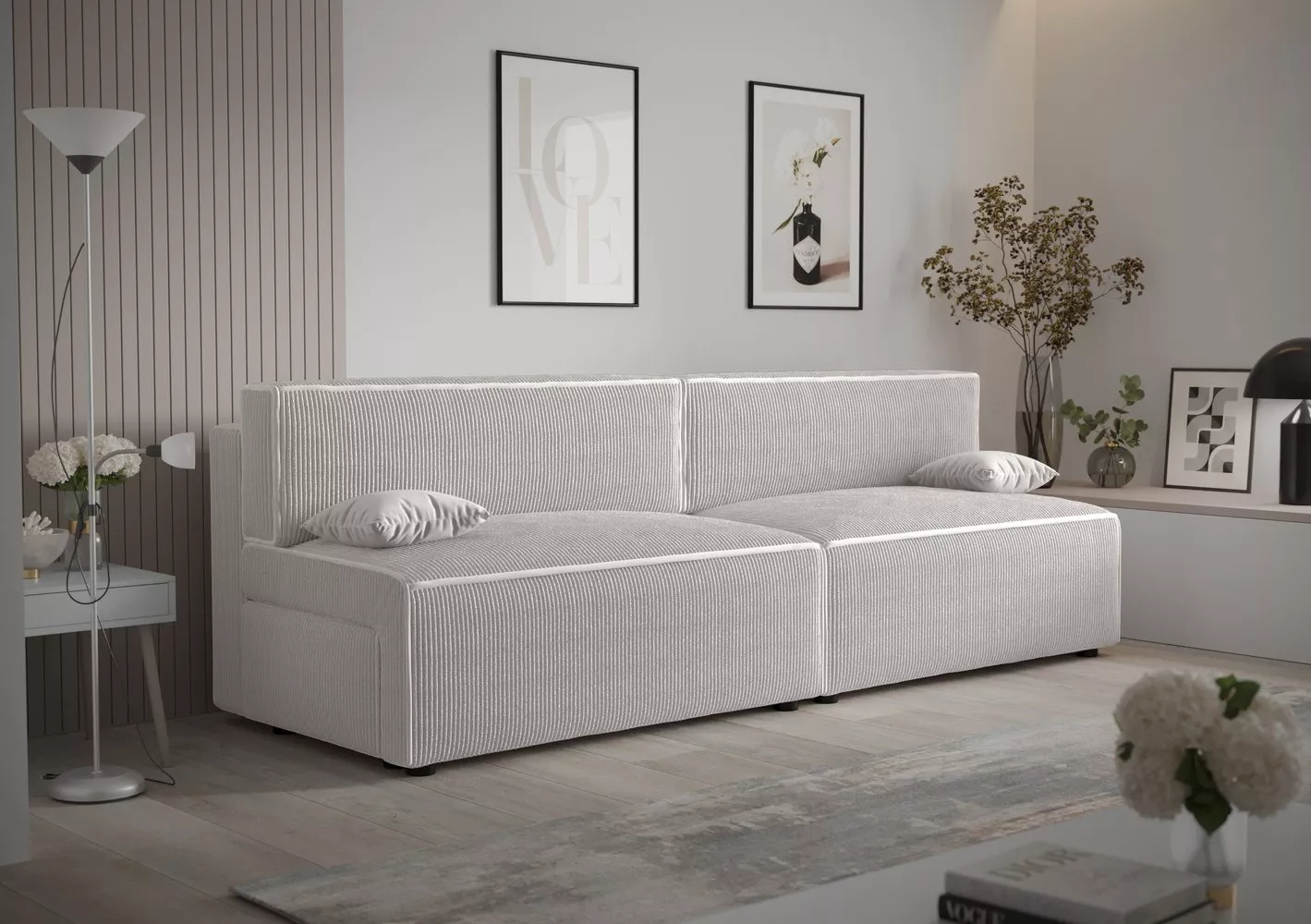 Jednoduché linie, čistý design a stylové prošívání pohovky RADANA ozdobí jakoukoli místnost. Samozřejmostí je úložný prostor a funkce rozkladu.