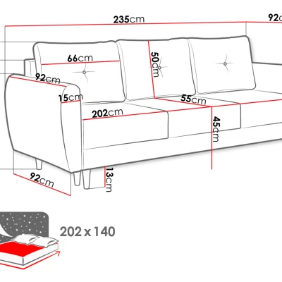 Hledáte pohovku vysoké kvality, mimořádného pohodlí a jedinečného designu? V tom případě je pro vás třímístná pohovka PROSPERO ta pravá. Pohovka je vybavena funkcí každodenního spaní na lůžku o rozměrech 130x202 cm a úložným prostorem na lůžkoviny. Vysoké masivní nožky podtrhují stylový charakter pohovky, a navíc napomáhají k udržování pořádku.