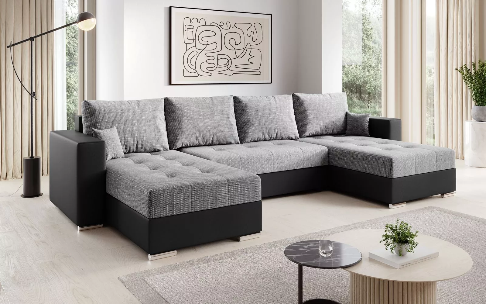 Sedací souprava do U TAMAYA 2 - světle šedá / černá