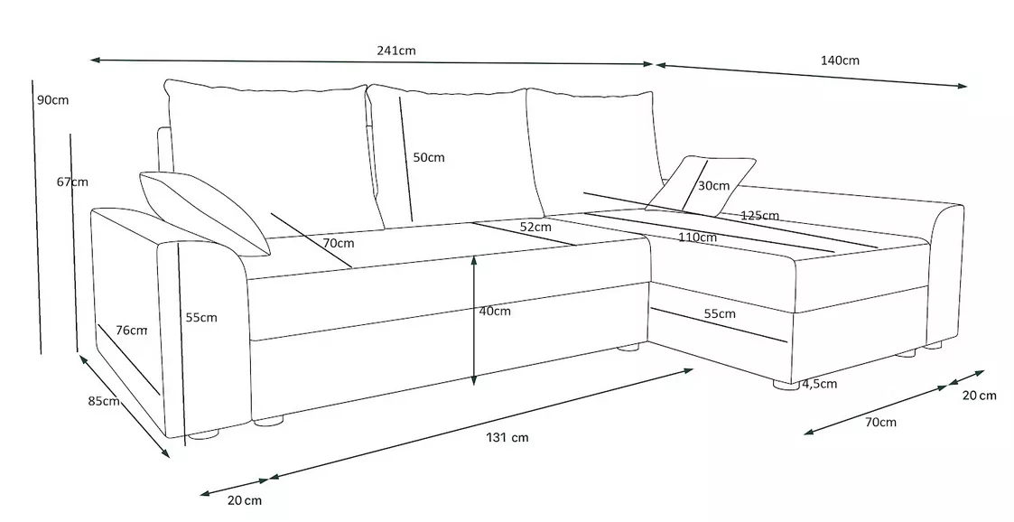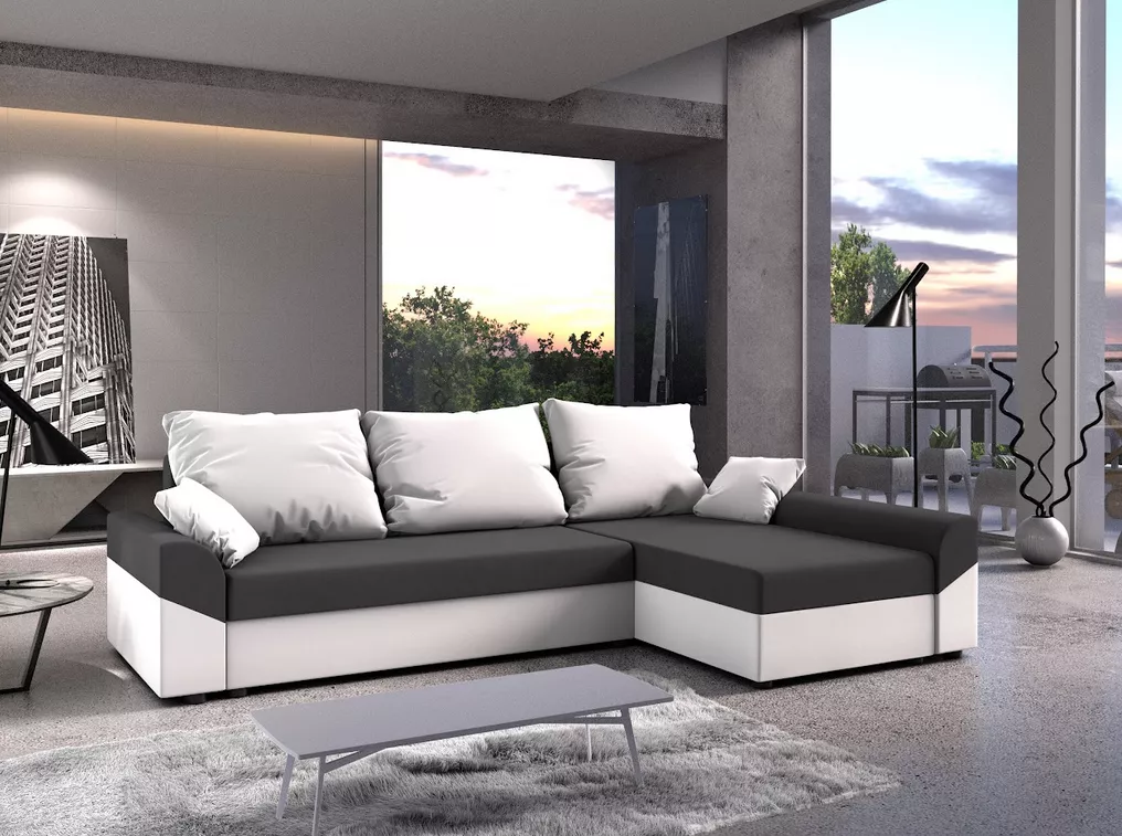 Rohová sedací souprava DAGMAR se hodí do všech moderních obývacích pokojů. Disponuje úložným prostorem a rozkládací funkci.