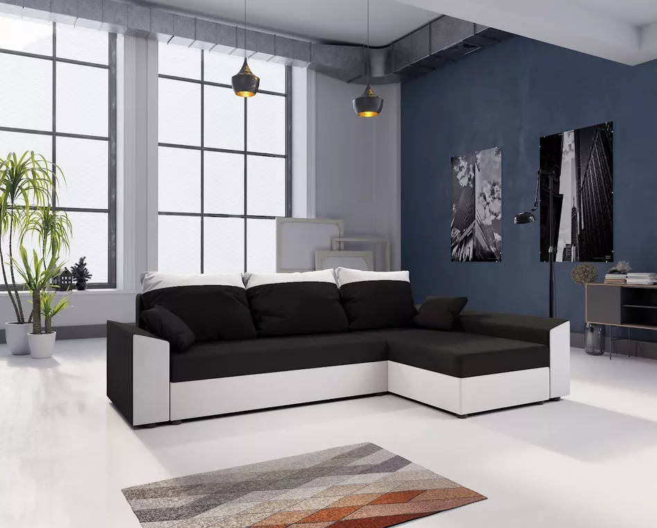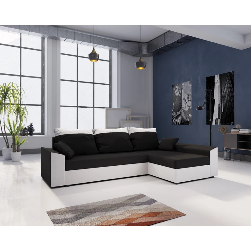 Rozkládací rohová sedací souprava PARI - černá / bílá 2