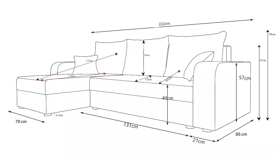 Rozkládací rohová sedací souprava PARI se hodí do všech moderních obývacích pokojů. Disponuje úložným prostorem a rozkládací funkci.
