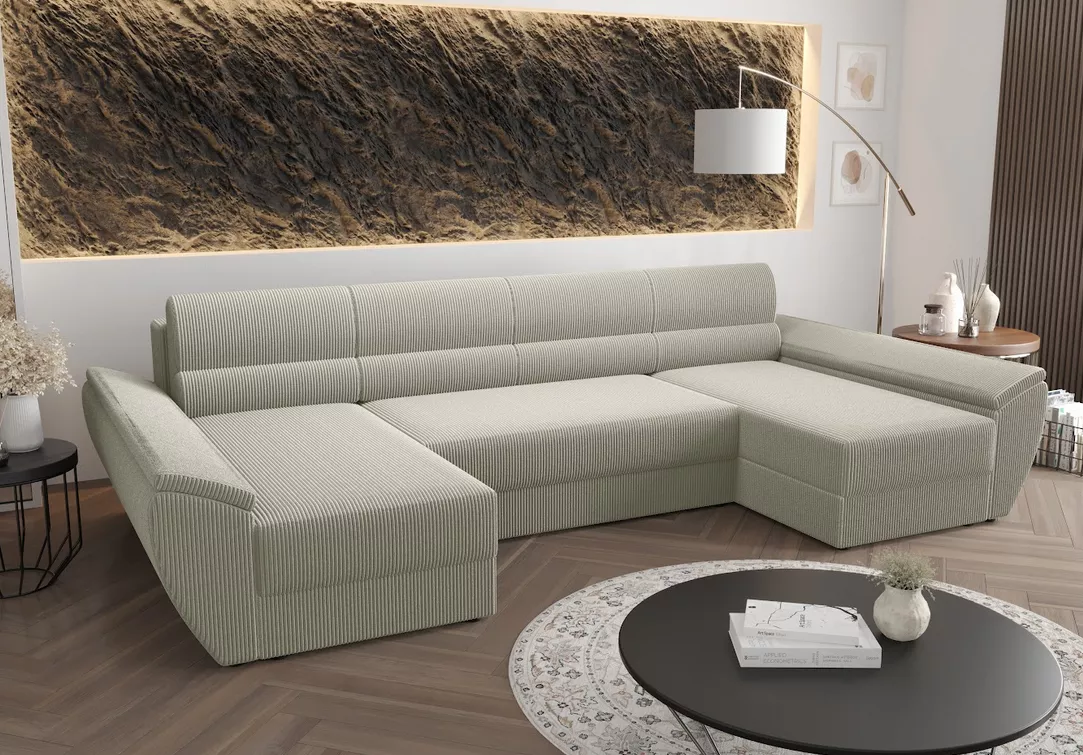 Rozkládací sedací souprava do U OPHELIA se hodí do všech moderních obývacích pokojů. Díky rozkládací funkci proměníte sedačku během pár vteřin na prostorné lůžko. Disponuje úložným prostorem.