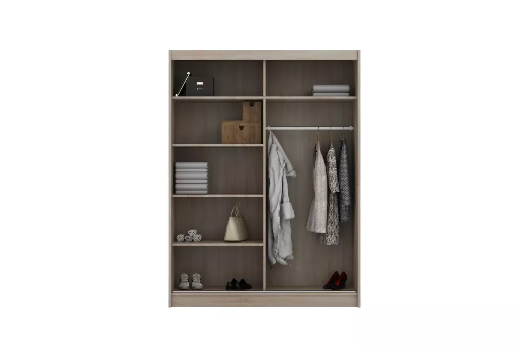 Šatní skříň s policemi ZOSIMA představuje spojení elegance a funkcionality. Nabízí dostatek úložného prostoru v podobě policového systému a 1 šatní tyče.