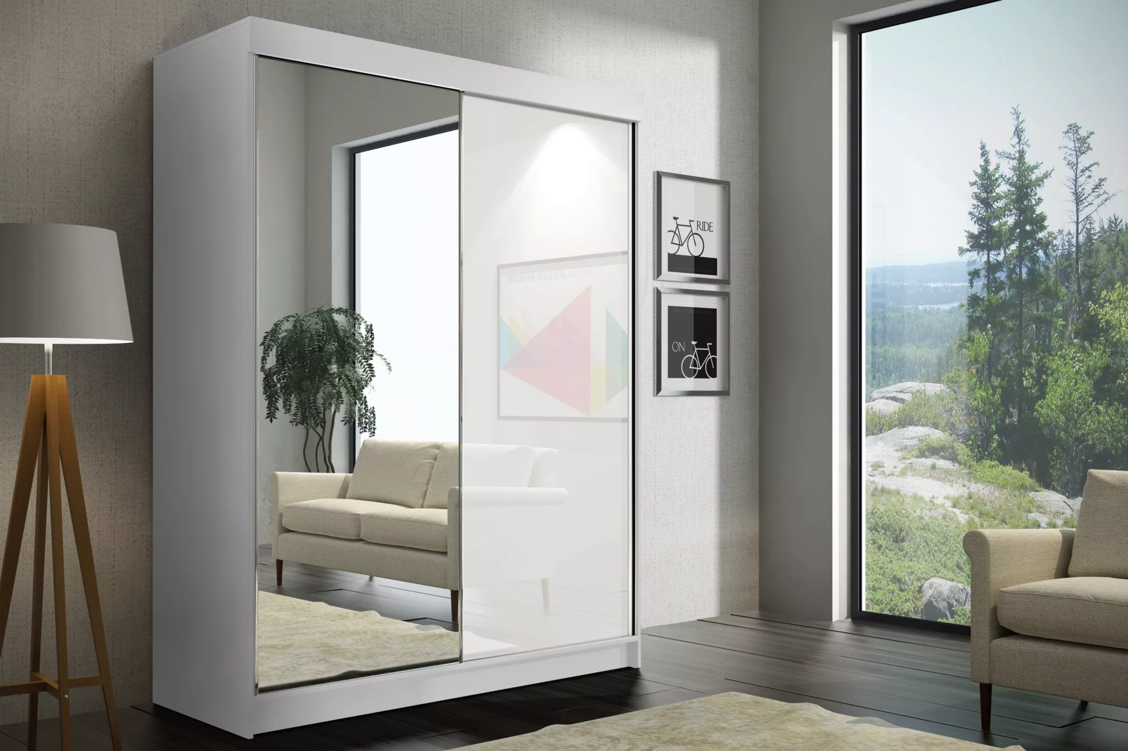 Šatní skříň se zrcadlem 150/62 LINEA - bílá