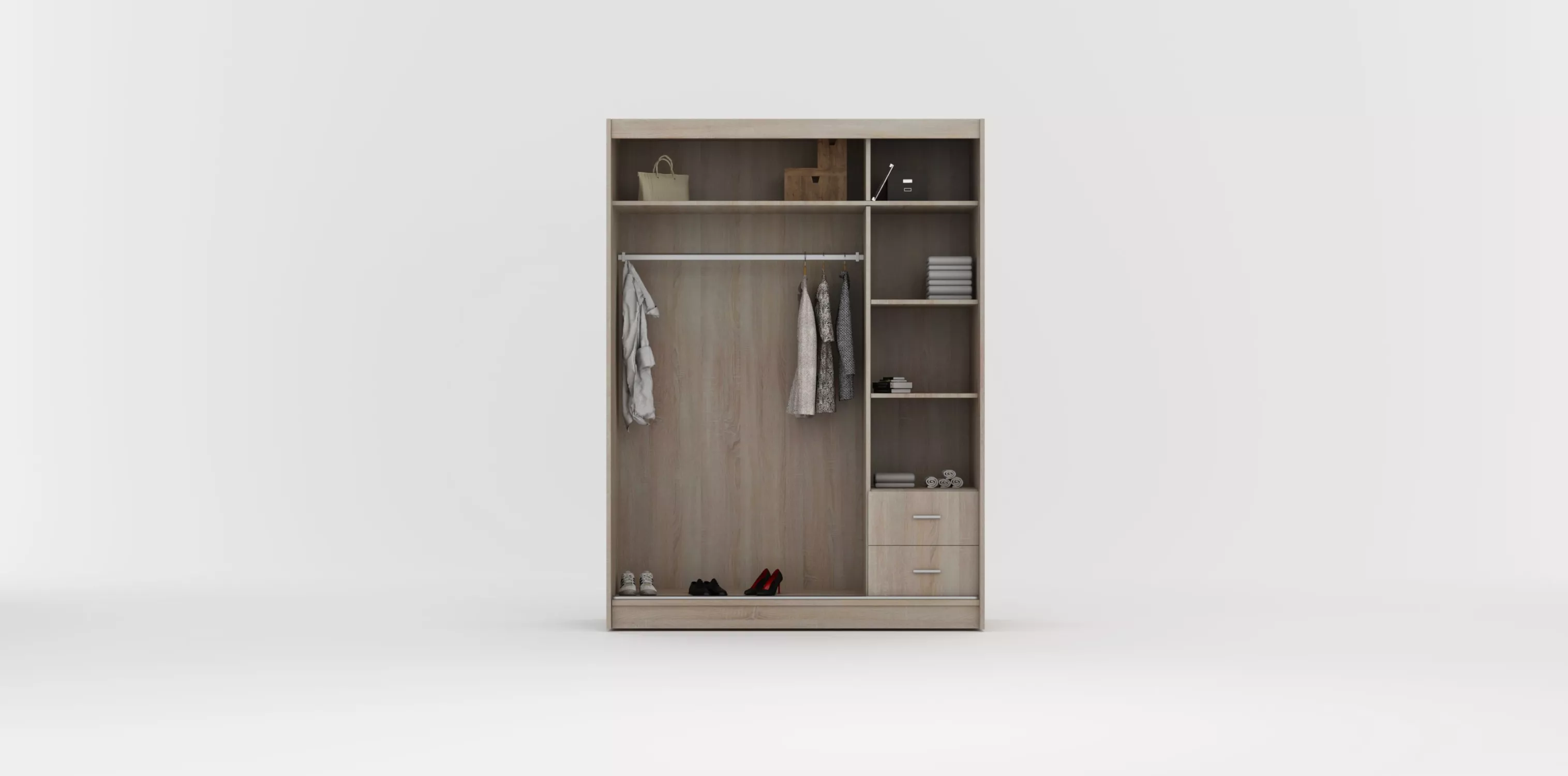 Šatní skříň se zrcadlem LINEA zaujme svým moderním designem a funkcionalitou. Skříň nabízí dostatek úložného prostoru v podobě policového systému a šatní tyče.
