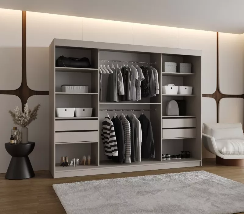 Šatní skříň 250 cm CASANDRA se zrcadlem - kašmír