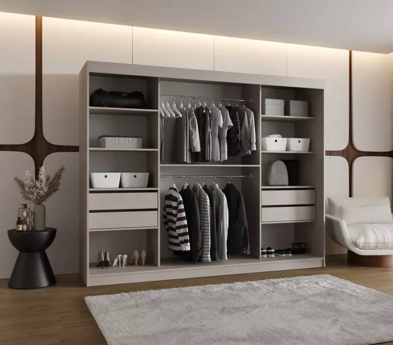 Třídveřová šatní skříň 250 cm CASANDRA se zrcadlem - kašmír