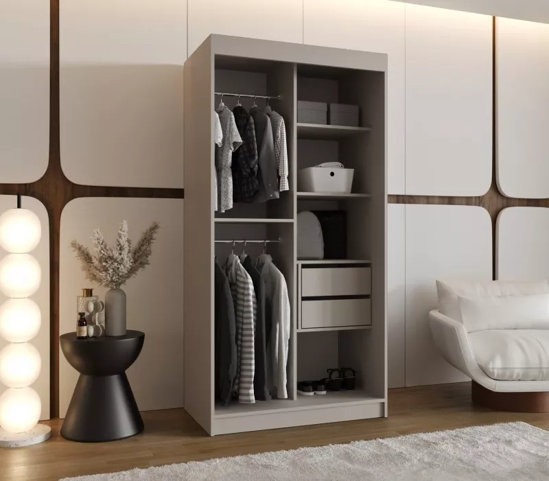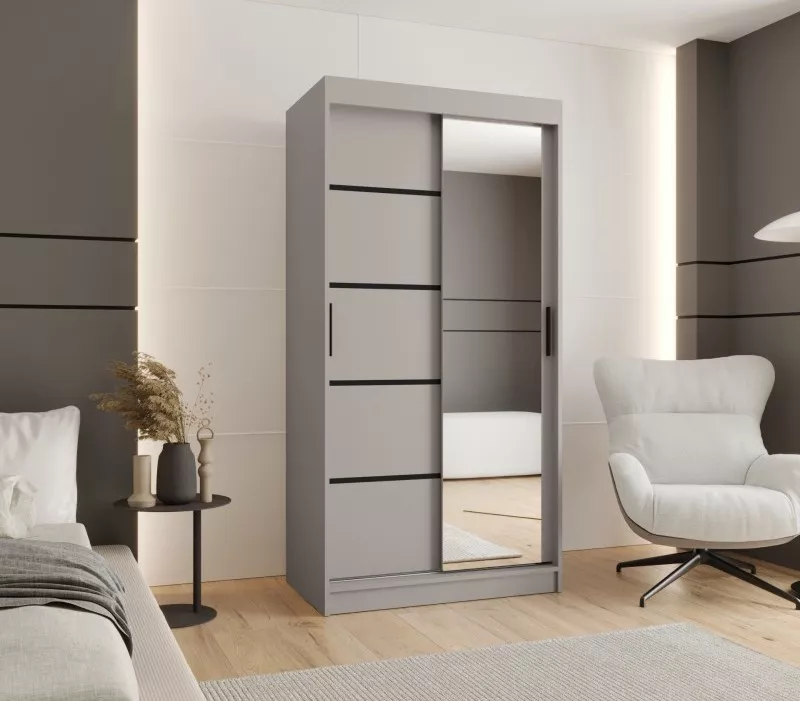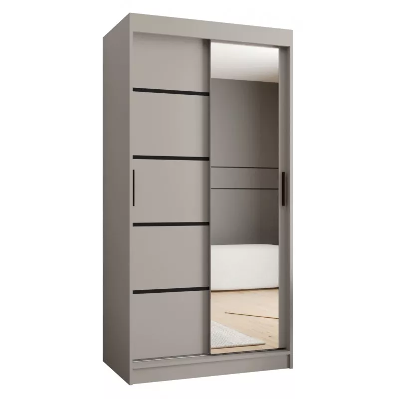 Úzká šatní skříň 100 cm CASANDRA se zrcadlem - kašmír / černá