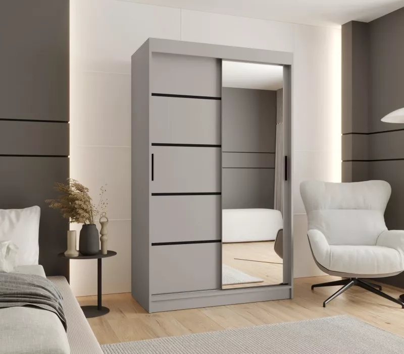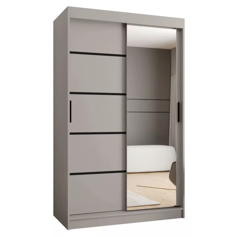 Úzká šatní skříň 120 cm CASANDRA se zrcadlem - kašmír / černá