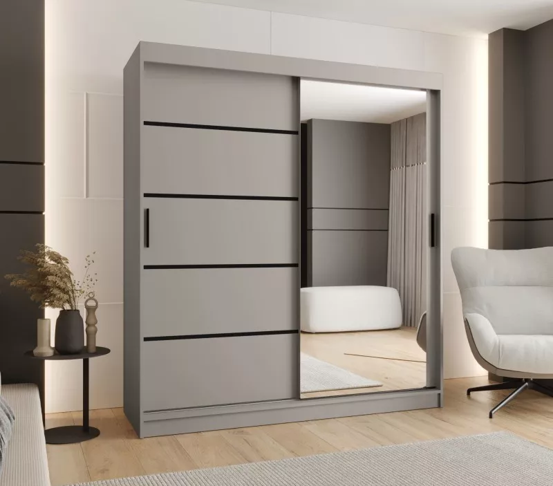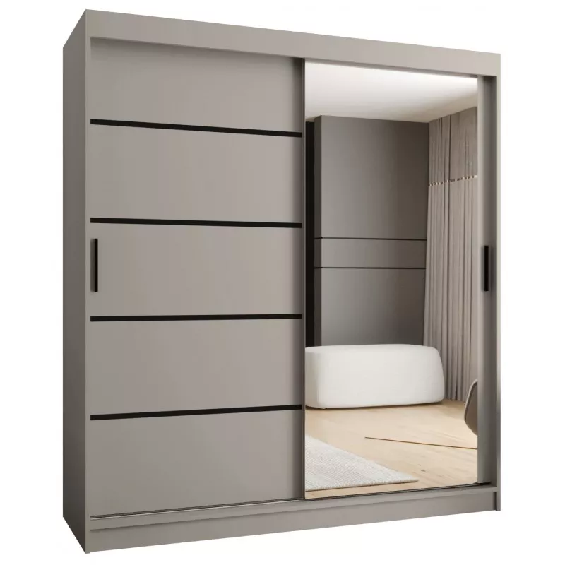Široká šatní skříň 180 cm CASANDRA se zrcadlem - kašmír / černá