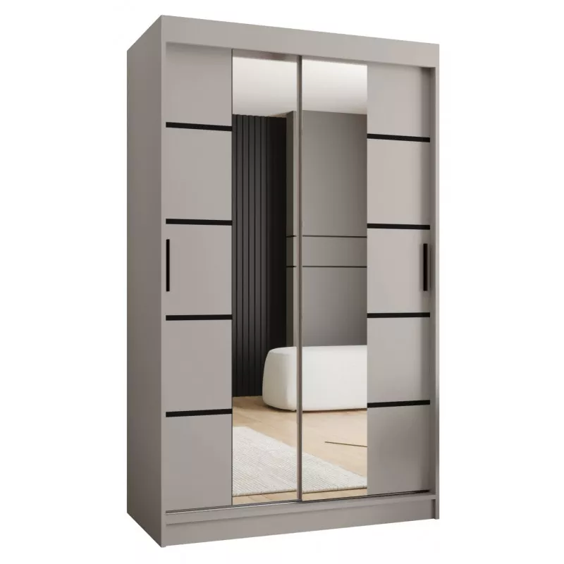 Úzká šatní skříň s posuvnými dveřmi 120 cm CASANDRA - kašmír / černá