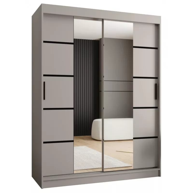 Široká šatní skříň s posuvnými dveřmi 150 cm CASANDRA - kašmír / černá