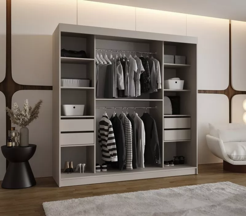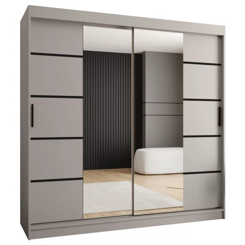 Široká šatní skříň s posuvnými dveřmi 200 cm CASANDRA - kašmír / černá