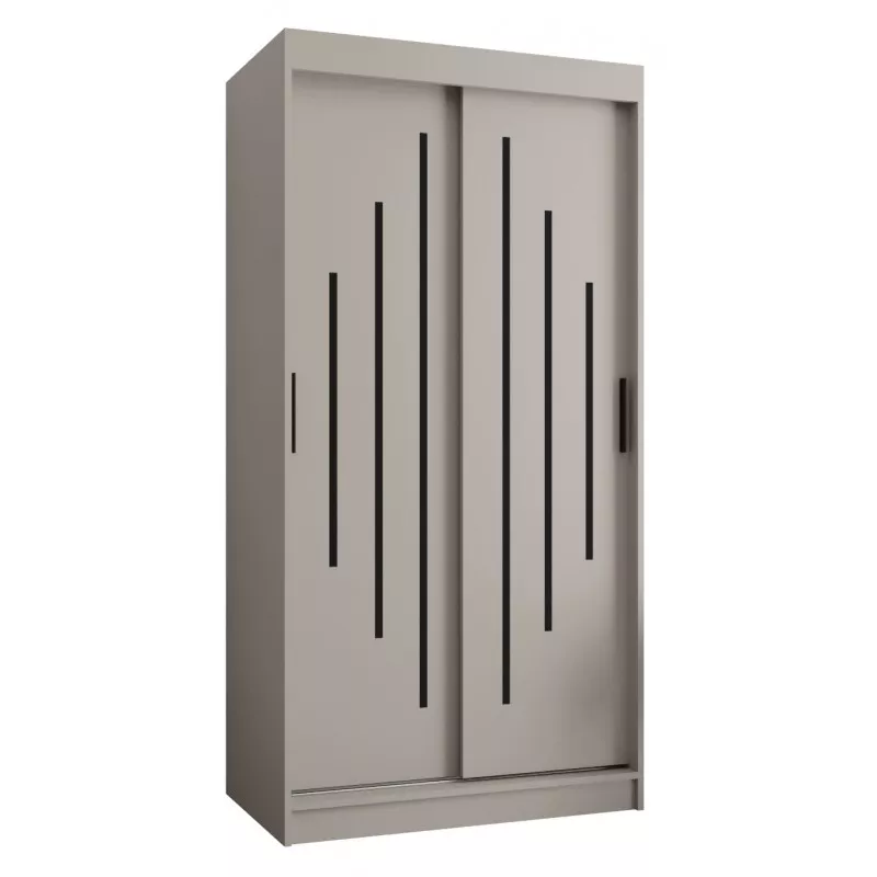 Šatní skříň 100 cm CASANDRA s posuvnými dveřmi - kašmír / černá