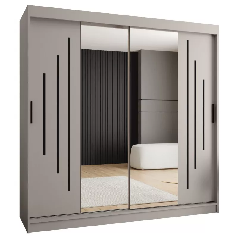 Šatní skříň 200 cm CASANDRA se zrcadlem - kašmír / černá