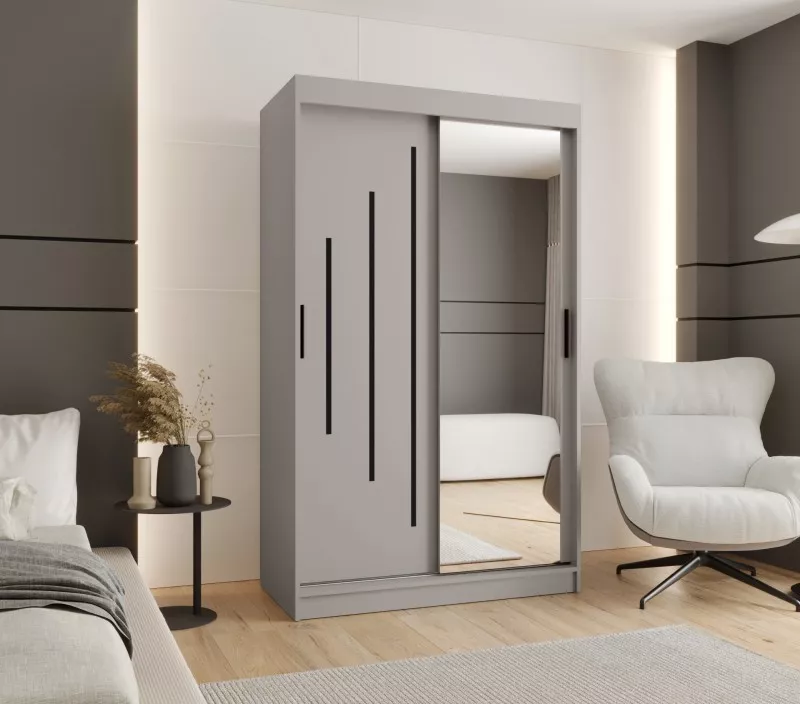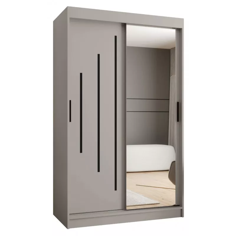 Zrcadlová šatní skříň 120 cm CASANDRA - kašmír / černá