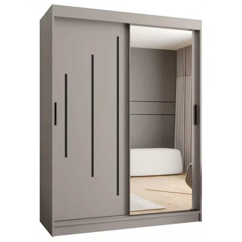 Zrcadlová šatní skříň 150 cm CASANDRA - kašmír / černá
