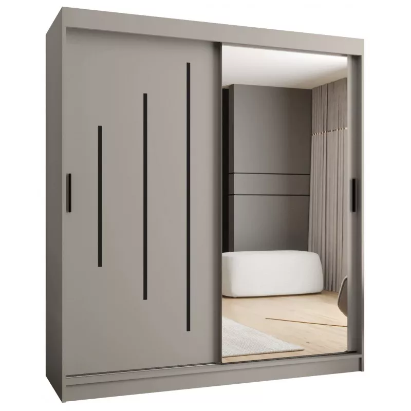 Zrcadlová šatní skříň 180 cm CASANDRA - kašmír / černá