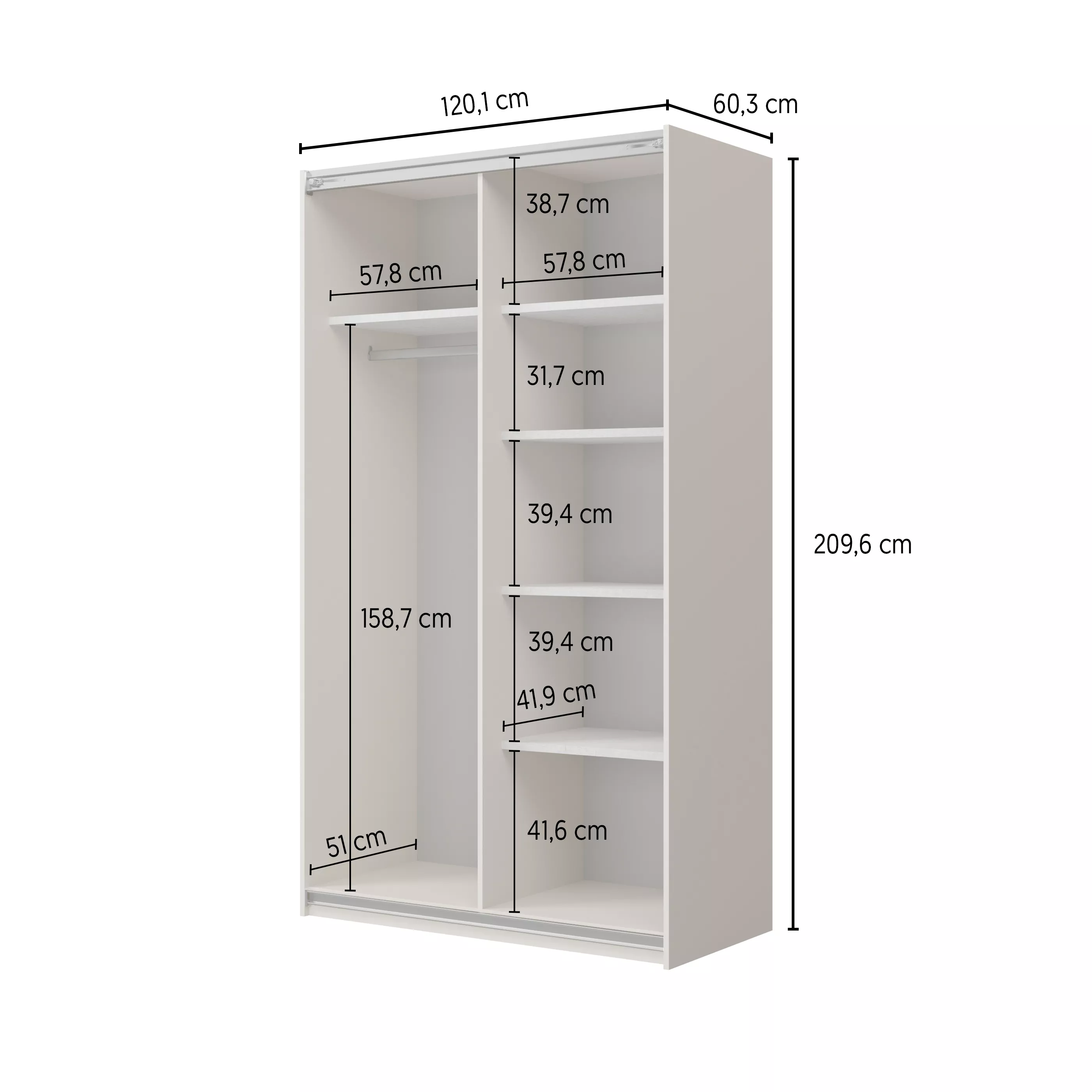 Šatní skříň 120 cm DEVORAH s posuvnými dveřmi svým minimalistickým designem zapadne do každého stylu interiéru. Díky prostorným policím a šatní tyči zde můžete uložit a zavěsit veškeré oblečení. Skříň s posuvnými dveřmi je ideálním řešením při nedostatku místa.