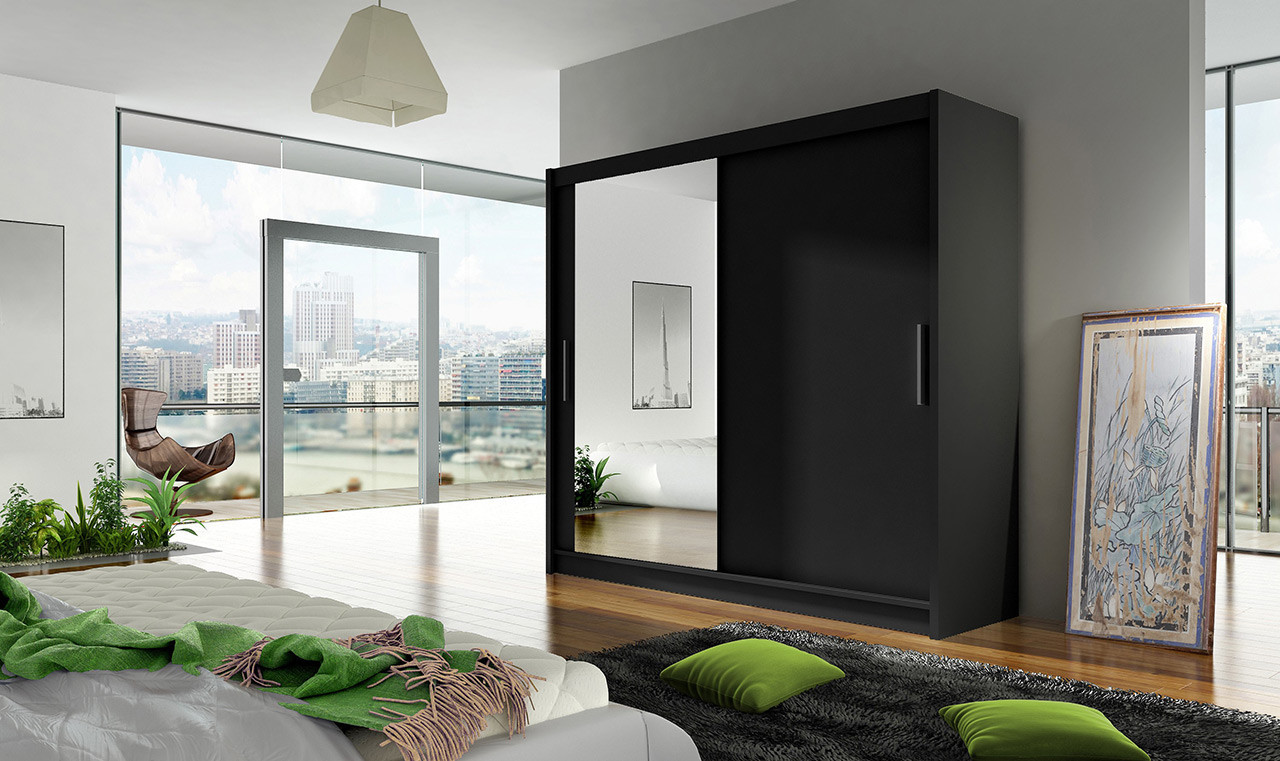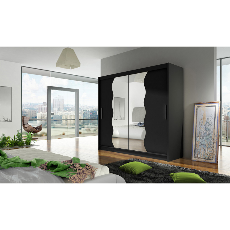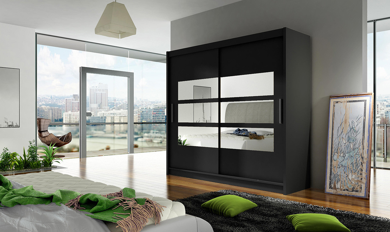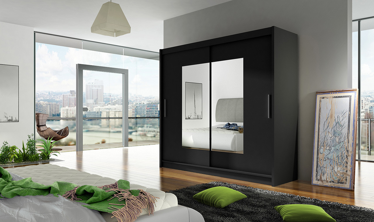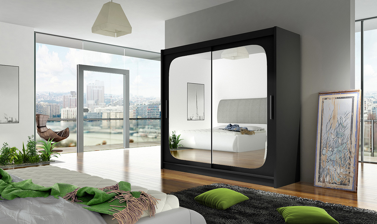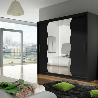 Prostorná šatní skříň se zrcadlem Damian - šířka 180 cm, černá