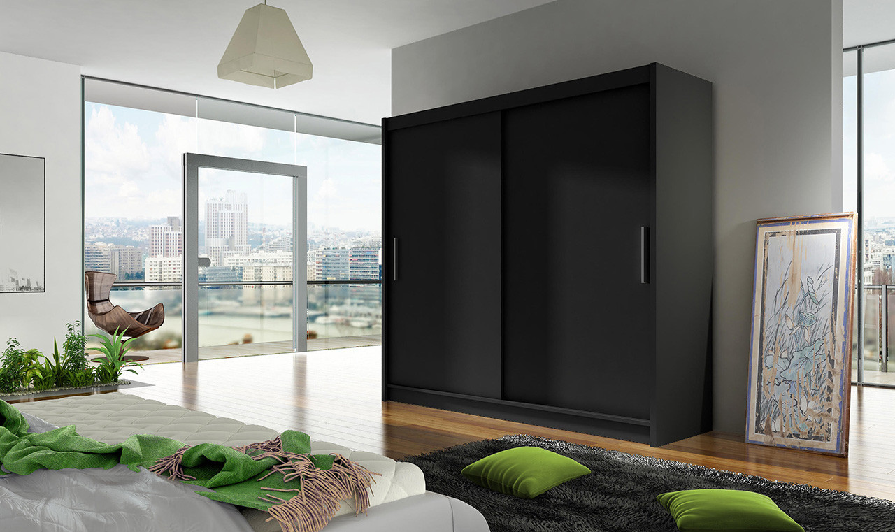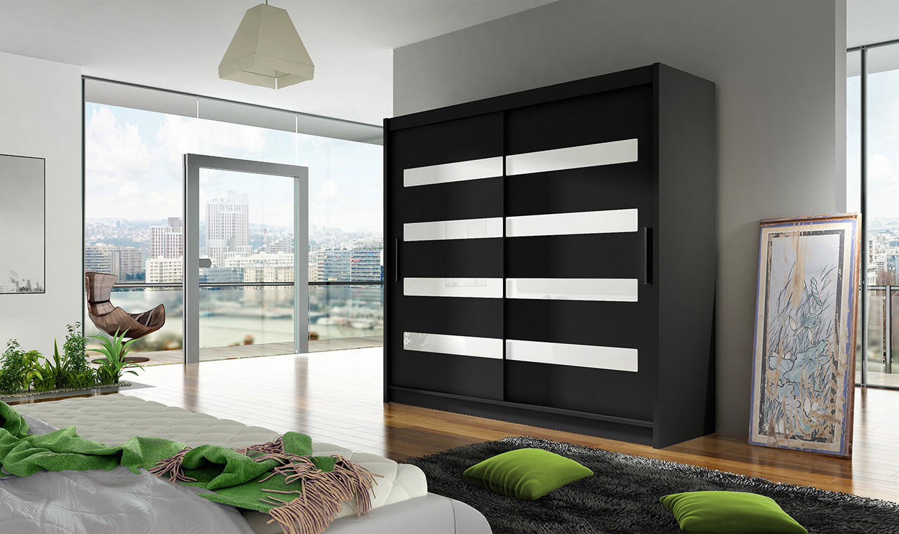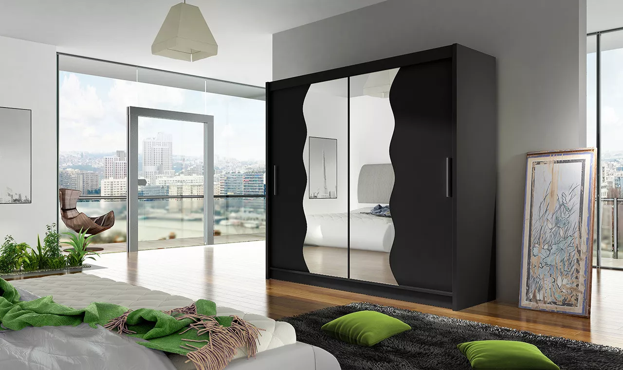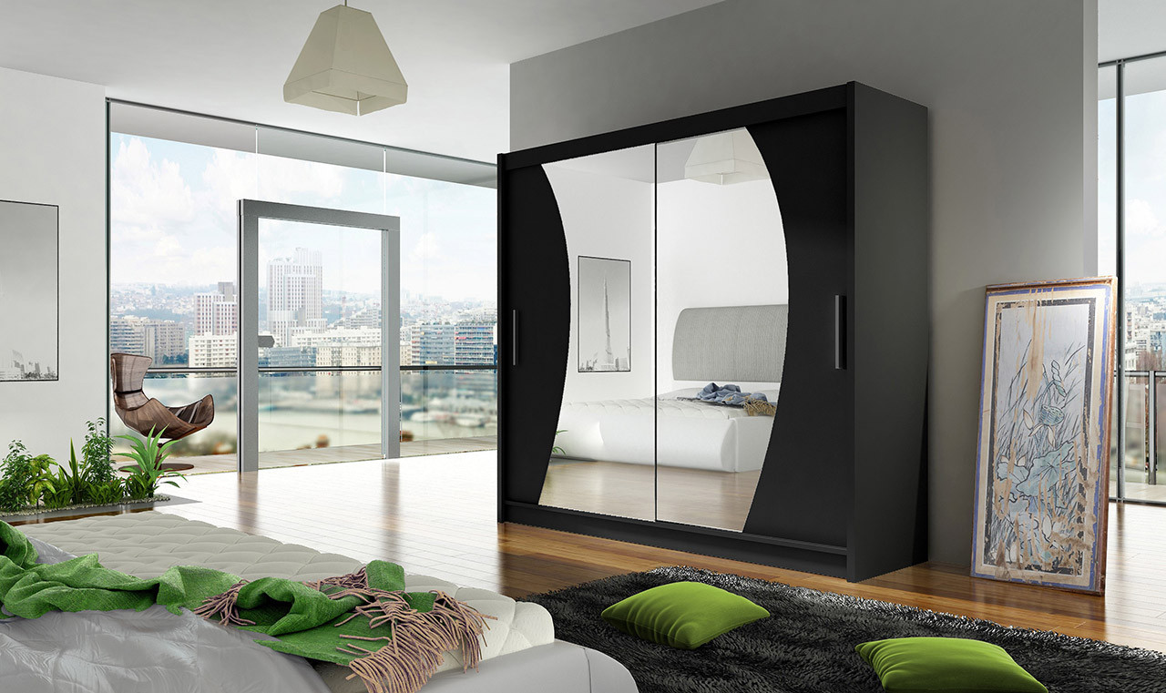 Prostorná šatní skříň se zrcadlem Damian - šířka 180 cm, černá