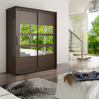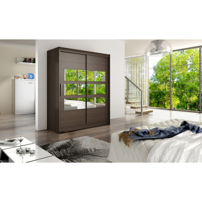 Prostorná šatní skříň se zrcadlem Kara - šířka 150 cm, čoko