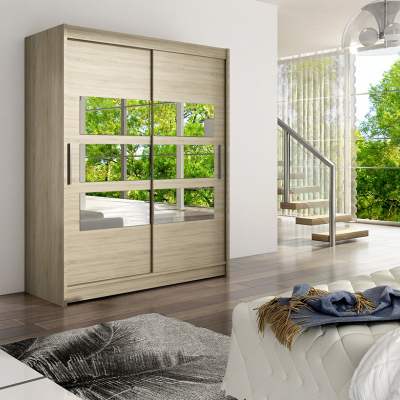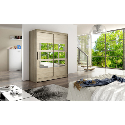 Prostorná šatní skříň se zrcadlem Kara - šířka 150 cm, sonoma