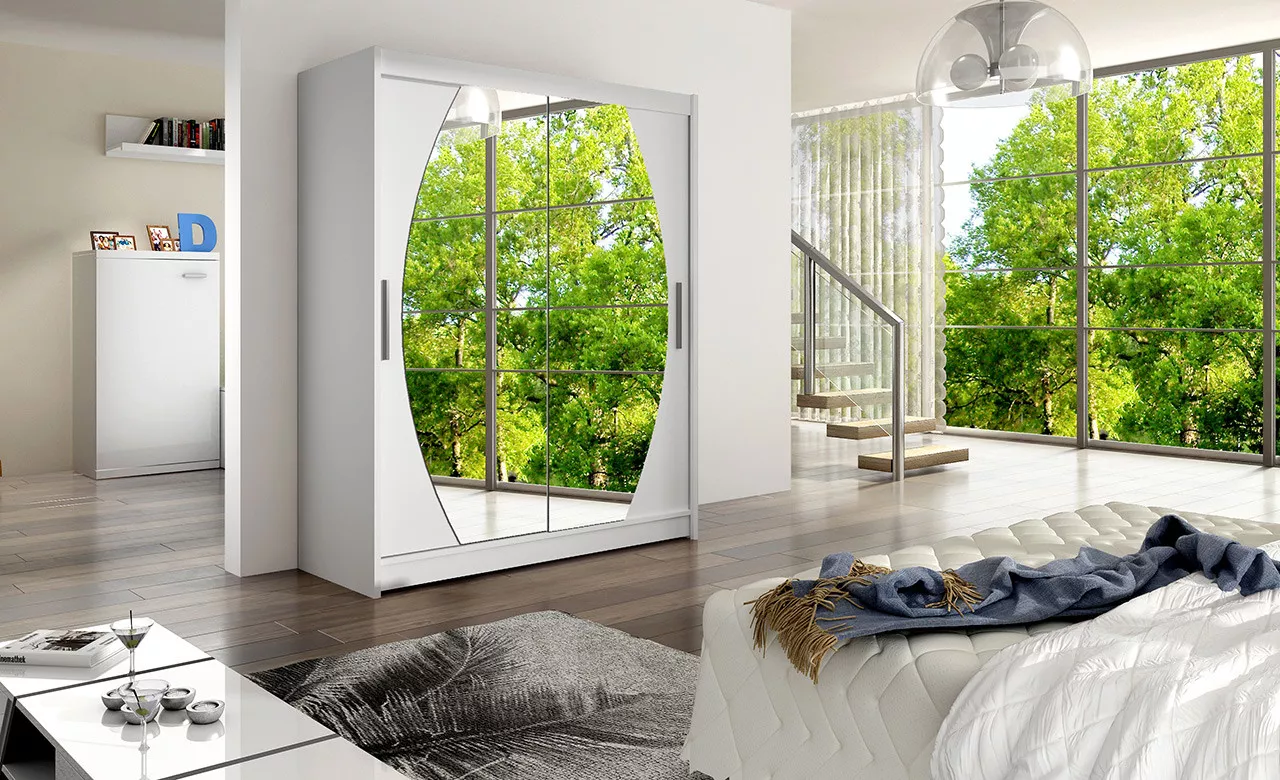 Prostorná šatní skříň se zrcadlem Olaf - šířka 150 cm, bílá
