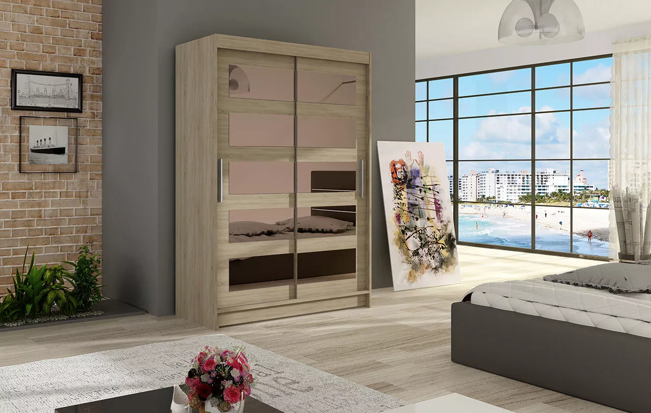 Šatní skříň se zrcadlem Sara - šířka 120 cm, sonoma