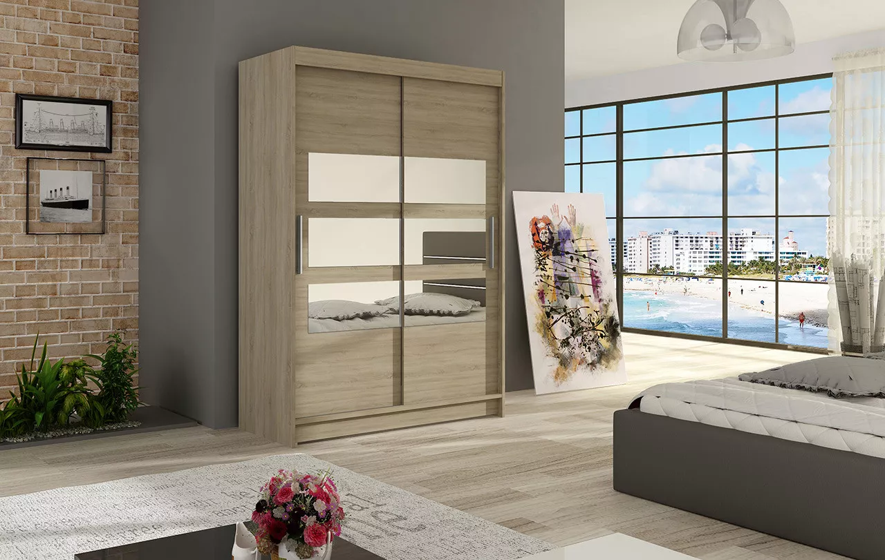 Šatní skříň se zrcadlem Pedro - šířka 120 cm, sonoma